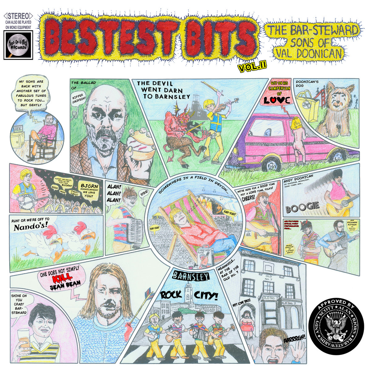 Hailing from Barnsley, The Bar-Steward Sons of Val Doonican are Britain's hardest working comedy band. Having played over 1,000 anarchic live shows to date, they are instantly recognisable for their immaculate hair and their stylish dress-sense. The have been critically acclaimed to be the UK festival scene's undisputed Kings of Parody. ... more